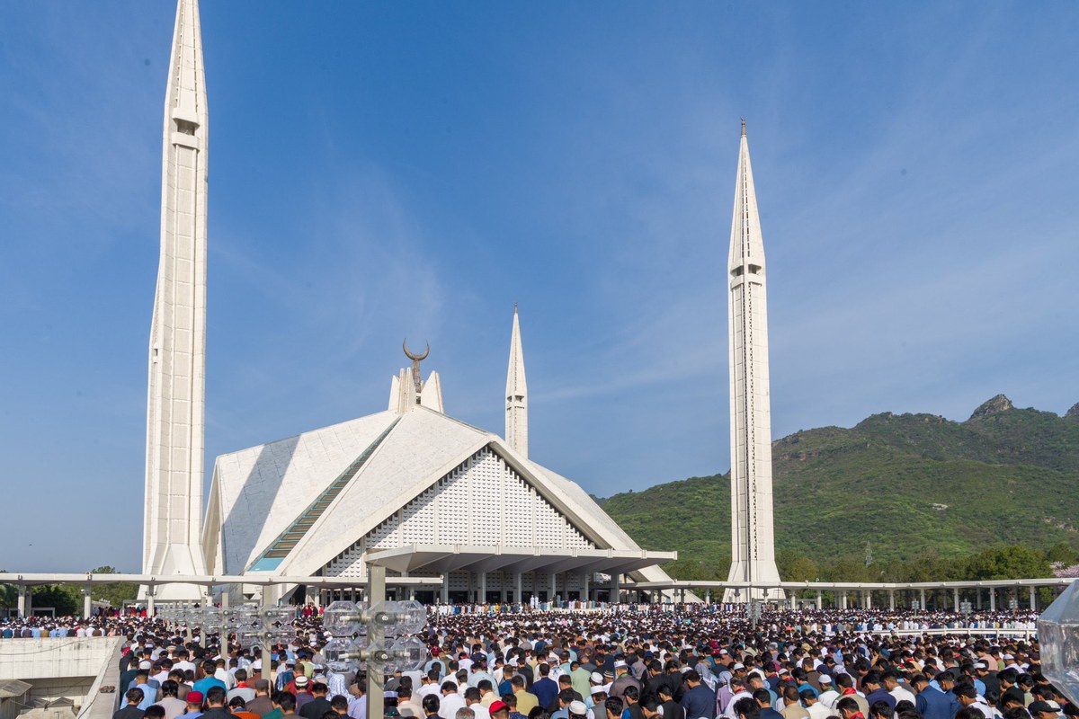 Muslim worshippers attend Eid prayers at Islamabad’s iconic Faisal Mosque in Islamabad, Pakistan on April 10, 2024. (@MWLOrg_Fr/X)