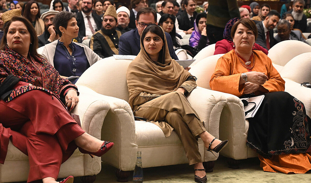 Nobel Peace Prize Laureate Malala Yousafzai (C) attends an international summit on 'Girls’ Education in Muslim Communities', in Islamabad on January 11, 2025. (AFP)