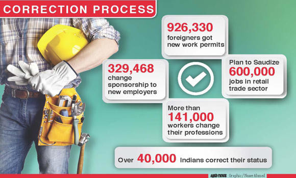 More than 1.58 million expats in the Kingdom have changed their residence and work status during the amnesty since April, the Labor Ministry said while disclosing plans to Saudize 600,000 jobs in the retail trade sector.