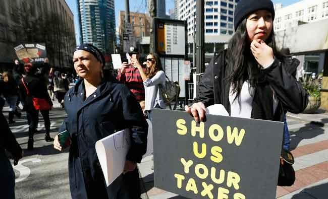 WASHINGTON: Thousands of protesters gathered Saturday in cities across the United States to pressure President Donald Trump to release his tax returns, a move of transparency he has refused to make.