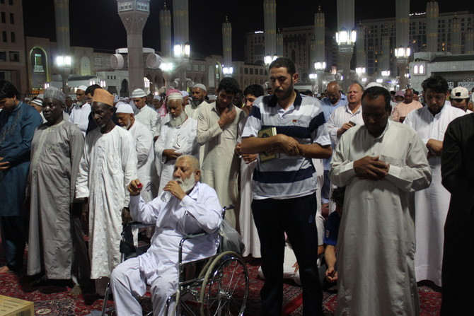 MADINAH/RIYADH: Worshipers perform Taraweeh prayers at the Prophet’s Mosque during this holy month of Ramadan, amid services provided by the government of King Salman.