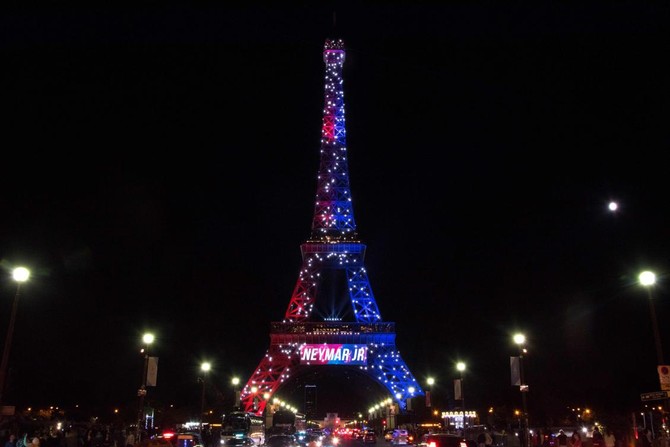 A screen near the bottom of the tower displayed a message welcoming Brazilian star Neymar to the club.