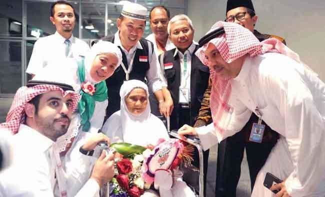 Ibu Mariah, one of the oldest pilgrims performing Hajj this year, arrived in Saudi Arabia on Saturday and was met at King Abdul Aziz International Airport’s Hajj Terminal by several Saudi television reporters, as well as officials from the Indonesian Consulate and various airport dignitaries.
