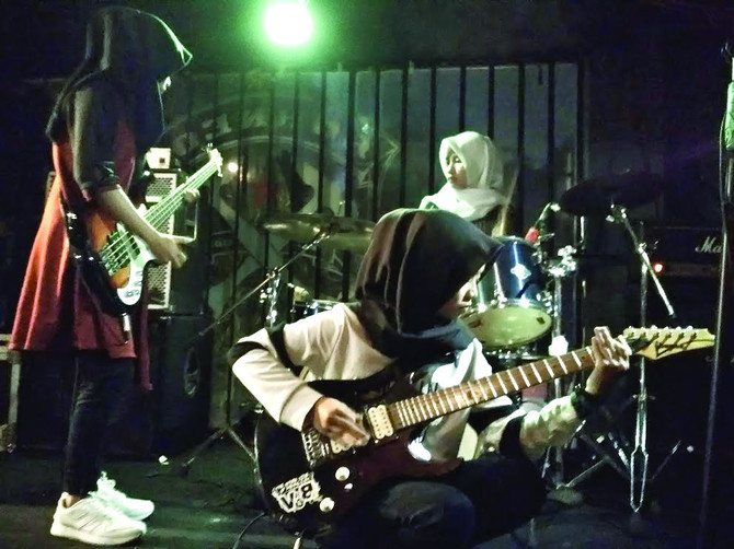 If anyone asks the three girls from Singajaya, a rural area in Indonesia’s West Java province, whether there is a connection between what they wear and being members of a metal band, they say no.