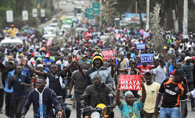 The protesters want to warn ruling party lawmakers not to pass an amendment to the election law that would limit the circumstances in which the Supreme Court could void an election on procedural grounds, Opposition lawmaker James Orengo said.