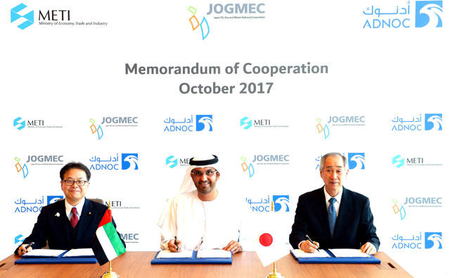 The Abu Dhabi National Oil Company (ADNOC) has signed a tri-partite memorandum of cooperation with Japan’s Ministry of Economy, Trade and Industry (METI) and the Japan Oil, Gas and Metals National Company (JOGMEC).