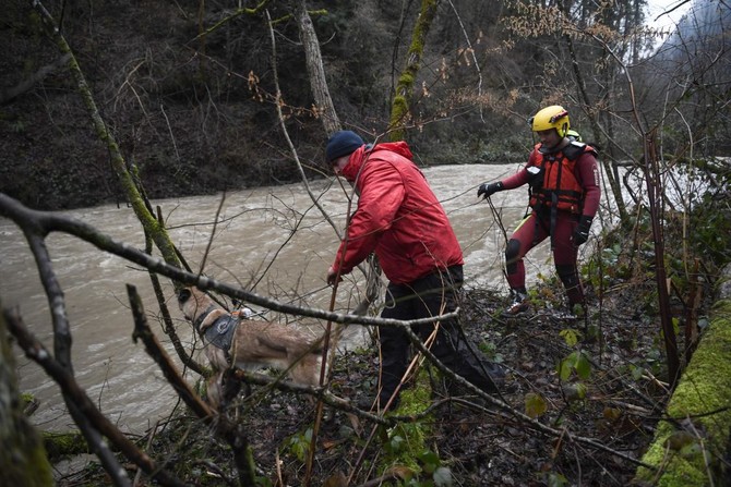 The French interior ministry said a firefighter went missing in the mountainous region of Savoie while rescuing a couple standing atop a car stuck in a river.