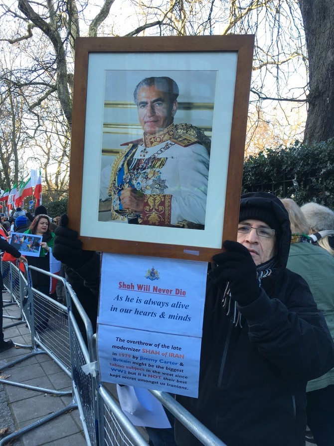 Many of the protesters were seen holding pictures of the Shah of Iran who was overthrown in 1979.