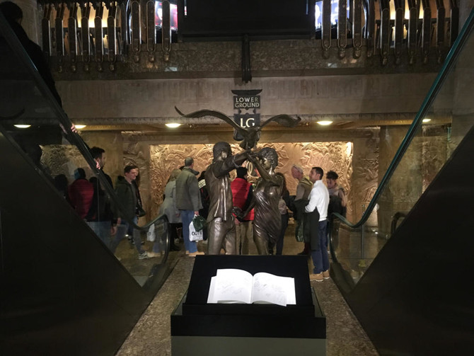 The statue was designed by Harrods artistic design adviser Bill Mitchell, and depicts the couple dancing beneath the wings of a seagull. It is unclear when exactly the store will remove it, with Harrods information staff unaware that it would be taken away.