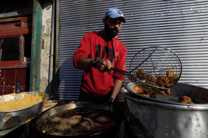 “We reopened almost two weeks ago,” the 33-year-old said, as one of his employees spooned balls of yellow chickpea mixture from a battered, bullet-pierced vat and dipped them in searing oil.