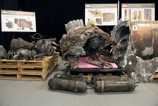 US officials say the wreckage displayed at the 905-acre military base comes from an Iran-made short-range ballistic missile provided to Houthi rebels in Yemen, who fired it at an international airport near Riyadh in November.