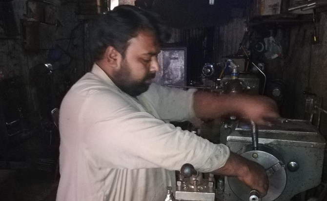 Muhammad Hanif, from Fateh Jang, a small town near Islamabad, makes gun barrels in his cramped workshop. He has been in the business for 20 years.