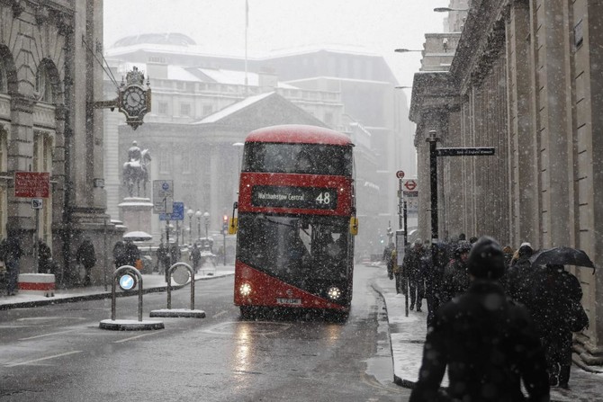 LONDON: As unusually cold weather gripped Europe, Britain’s military was sent out Friday to central and western England to get hospital employees to work and help police rescue people from snowbound vehicles.