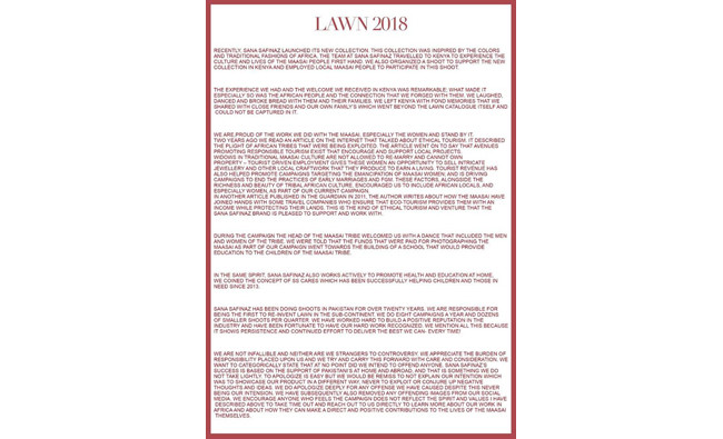 “We do apologise deeply for any offence we have caused, despite this never being our intention." An official statement by Sana Safinaz reads.