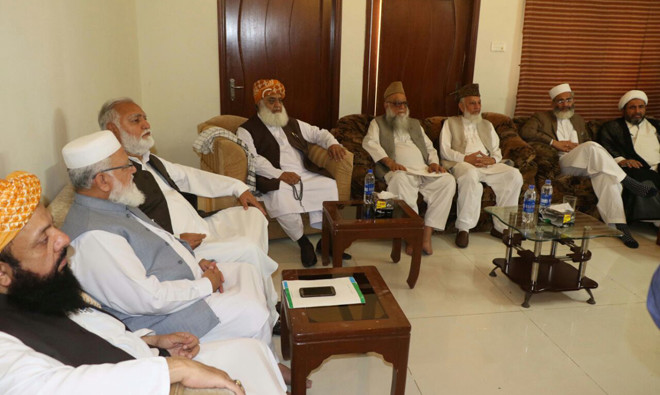Flanked by Jama’at-e-Islami chief Sirajul Haq, Jamiat Ahle Hadith President Sajid Mir, Jamiat Ulema-e-Pakistan (JUP) chief Maulana Owais Noorani and others, the newly elected president of the alliance told a post-meeting media briefing that the alliance will soon announce organizations up to district levels across Pakistan.