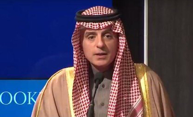 Speaking at the Brookings Institution in Washington, Adel Al-Jubeir said the war in Yemen was imposed on Saudi Arabia and is not a war of choice, adding that Saudi Arabia has been dealing with Iranian meddling in the region since the 1979 revolution.