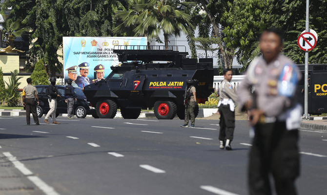 SURABAYA, Indonesia: The police headquarters in Indonesia’s second largest city was attacked Monday by suspected militants who detonated explosives from a motorcycle, wounding four officers and six civilians./