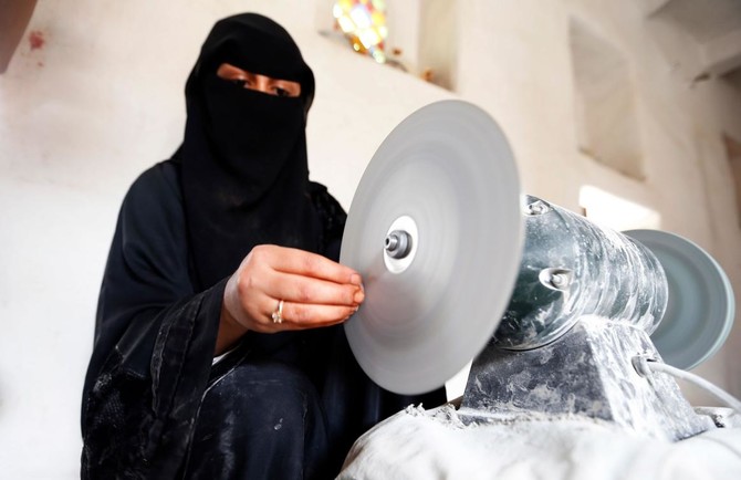 SANAA: Her fingers bleed from beneath the nail beds, but sitting at her workstation, filing Yemeni gemstones on a spinning wheel, Safaa Al-Faqih is at peace in a country for too long at war.