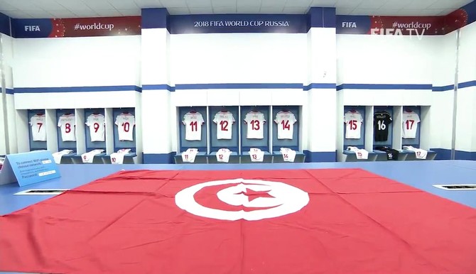 8:35PM: The Tunisia dressing room ahead of their opening game against England. Excitement building in Volgograd!