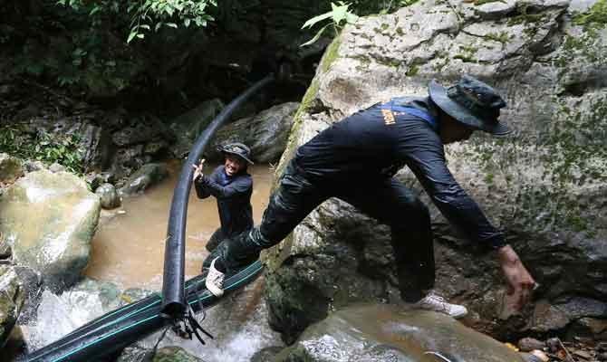 Rescuers have been unable to extend a hose pumping oxygen all the way to where the boys are, but have brought them some oxygen tanks.