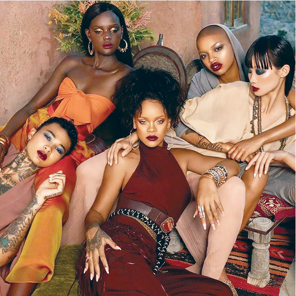 The campaign photos — visible on Rihanna’s Instagram page — feature a variety of models, including the pop superstar herself, posing against sunburnt orange and pink backgrounds.