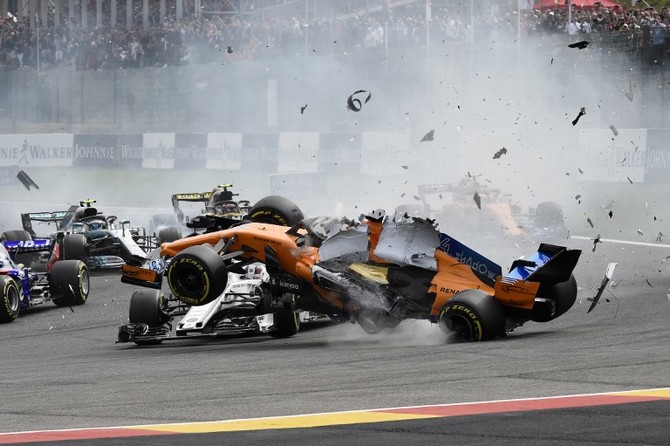 It came moments after Fernando Alonso’s McLaren flew through the air and landed on top of Charles Leclerc’s Sauber. Leclerc, unharmed, was likely spared a head injury by the protective halo device surrounding the cockpit area of F1 cars.
