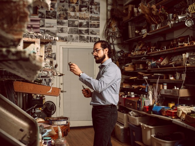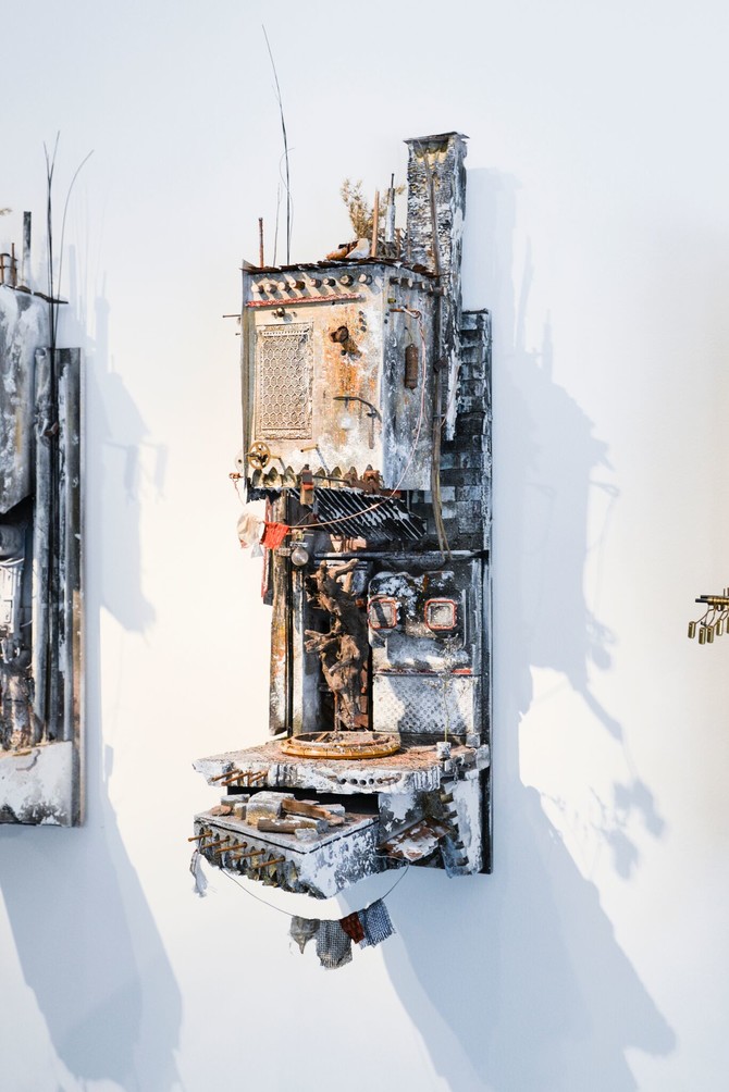 He has kept his work in his studio for 10 years, working with his emotions and collecting, modeling, plastering and glueing miniature objects for his models before showcasing them to the world.