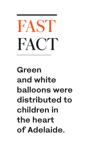 A group of female Saudi students decided to introduce their country the way they see it. Eighty-eight balloons representing the Kingdom’s National Day were distributed to children in the heart of Adelaide, along with flowers, chocolate and flyers about the history of Saudi Arabia.