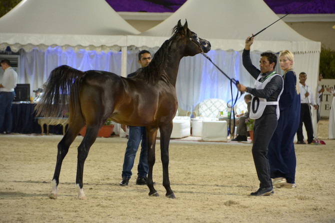 A panel of local and international judges from Germany, Belgium, Egypt, Palestine, Bahrain and Saudi Arabia, evaluated the horses’ conformation during the trot, stand and walk. Each horse was individually examined and rated according to its type, head and neck, body and topline, legs, and movement, based on a 20-point system.
