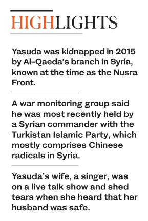 Yasuda was kidnapped in 2015 by al-Qaeda's branch in Syria, known at the time as the Nusra Front, after contact with him was lost in June that year. A war monitoring group said he was most recently held by a Syrian commander with the Turkistan Islamic Party, which mostly comprises Chinese extremists in Syria.