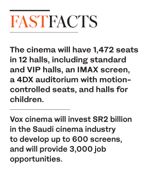 “Vox cinema will invest SR2 billion ($530 million) in the (Saudi) cinema industry to develop up to 600 screens, and will provide 3,000 job opportunities over the next five years to contribute to achieving a goal of Vision 2030 to diversify the local economy and output,” he added.