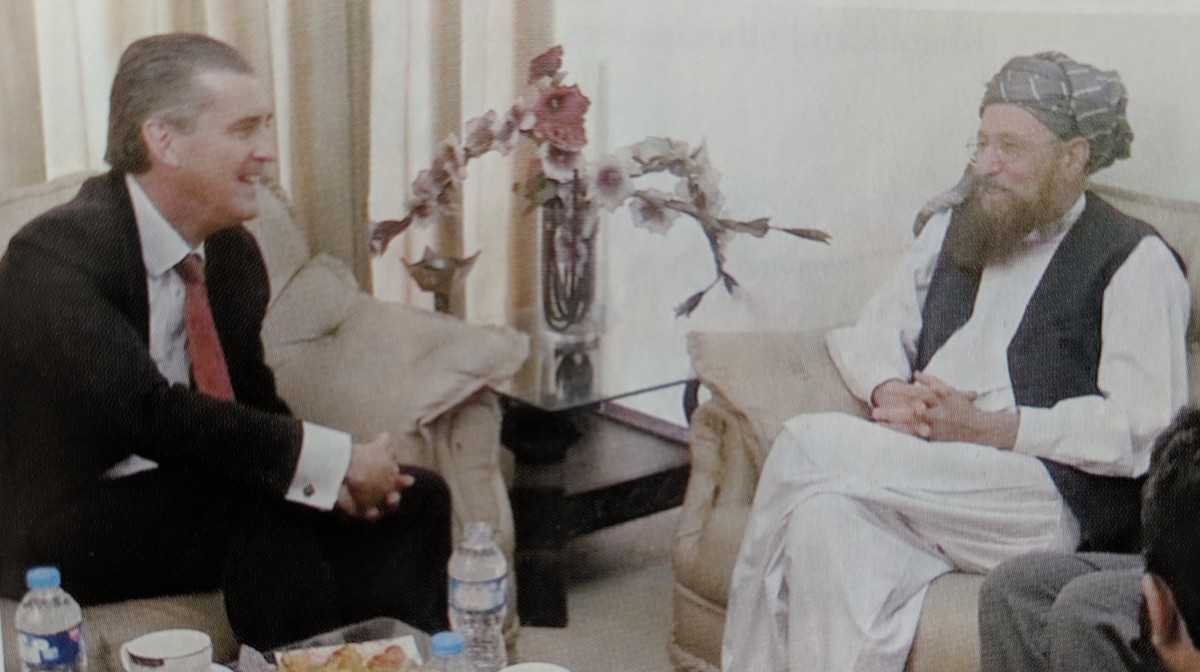 July 10, 2014, meeting with US ambassador RICHARD Olson at his house in Islamabad. (Photo courtesy: Maulana Samiul Haq’s Book)