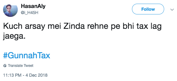 While sin tax is a commonly used term to mean excise or sales tax on products deemed harmful to society, the translation by Urdu-language media of the word sin as ‘gunnah,’ used to refer to activities that go against the commands of Allah, did not go down too well among Pakistan’s puff-chested, rambunctious Twitter users.