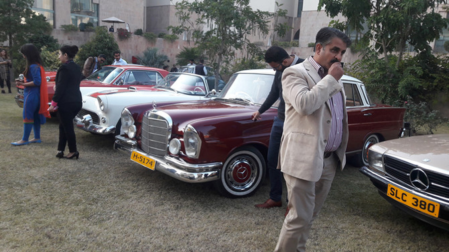 Owners of vintage car showcased more than two dozen classic vehicles on Friday, at a sprawling lawn of a private restaurant, as part of their annual rally to promote a softer image of Pakistan.