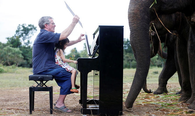 Classical piano soothes old elephants at Thai sanctuary