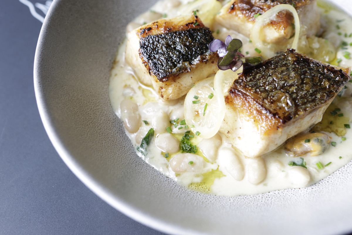 Next came white fish sashimi that’s been marinated in a yuzu sauce and topped with grapes and raw scallops that have been encased in soy-gelatinous paper that melts in the mouth. Jaeckle described it as “Japanese ravioli.”