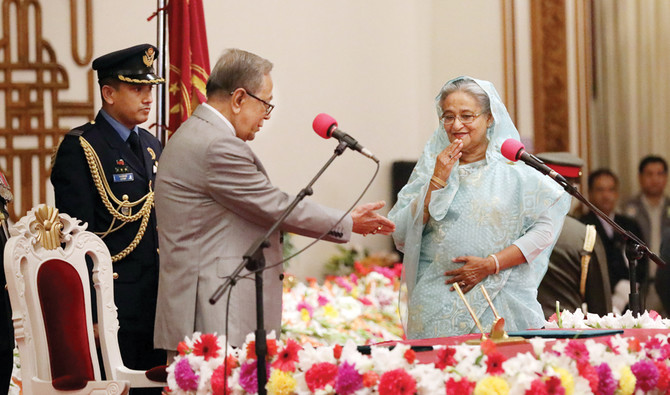 DHAKA: Sheikh Hasina was sworn in as Bangladesh’s prime minister for a record fourth term on Monday after an election victory marred by claims of widespread rigging.