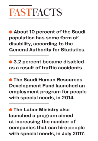 About 10 percent of the Saudi population has some form of disability, according to a survey conducted by the General Authority for Statistics.