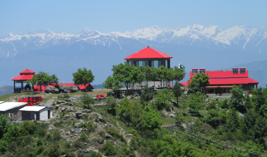 A view of a newly constructed home in Malam Jabba, scenic Swat valley, while snow covering a mountain peak can also be seen in the background. (AN photo by Aamir Shah)