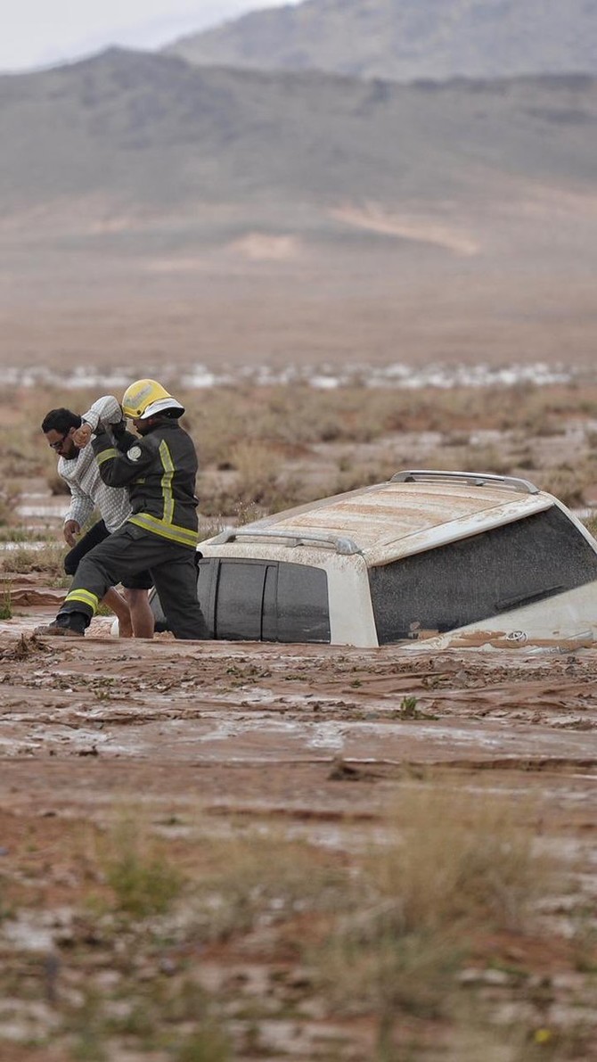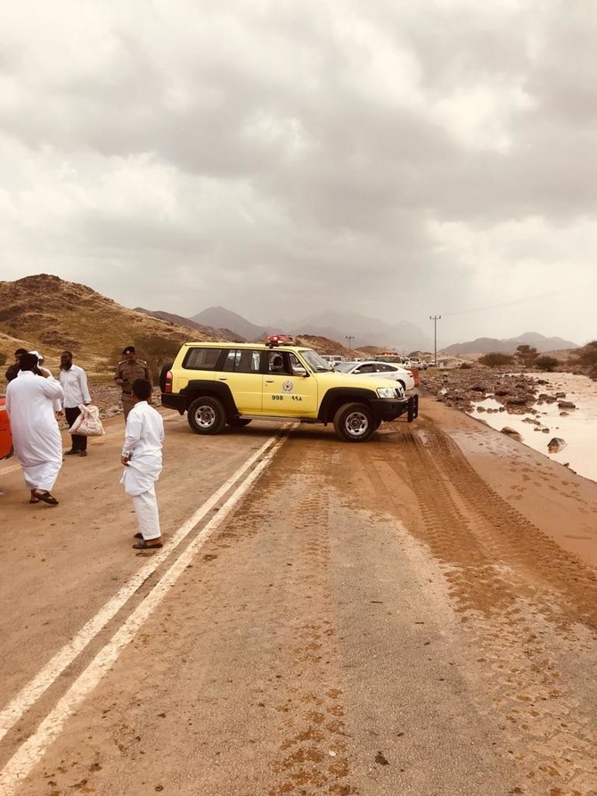 Elsewhere, 111 people have been rescued by the Civil Defense in Madinah, western Saudi Arabia, after heavy rains in the area, and 14 families have been relocated.