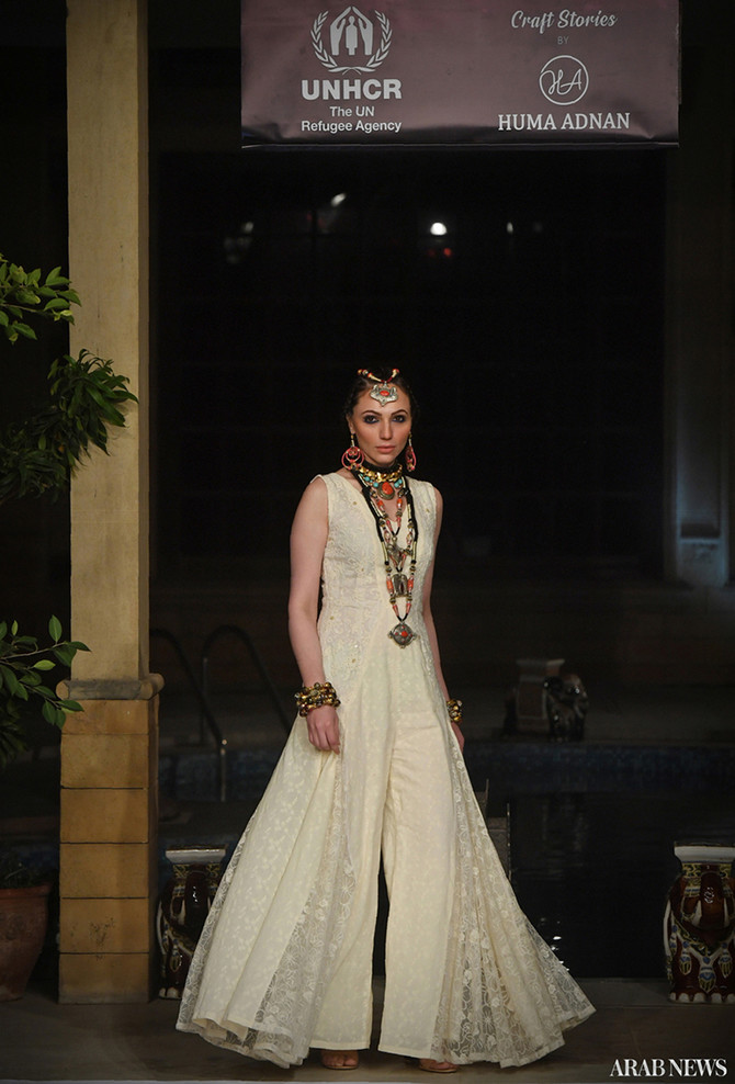 Sara Khan, a Pakistani TV actress who walked the ramp, said she was happy to be a part of the cause. “It’s the proudest moment for me,” she told Arab News, adding that for all “women, whether they are moms raising their children or refugees going through tough times, [such opportunities] can help them prove themselves if given a chance.
