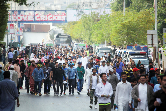 Thousands of cricket fans gathered at the National Stadium in Karachi on Saturday, March 9, 2019, as Islamabad United and Lahore Qalandars faced each other in the first of the last eight matches of the Pakistan Super League (PSL). (AN Photos by M.F. Sabir)