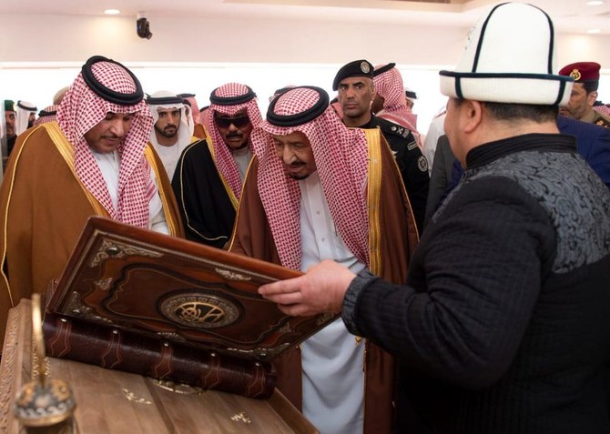 King Salman welcomed Kuwait’s Crown Prince Sheikh Nawaf Al-Ahmad Al-Jaber Al-Sabah, Dubai Crown Prince Sheikh Hamdan bin Mohammed Al-Maktoum, Oman’s Sultan Qaboos bin Said’s representative Sheikh Saad bin Mohammed Al-Saadi, Kyrgyz Premier Mukhammedkalyi Abylgaziev, representative of the King of Bahrain for Charity Works and Youth Affairs Sheikh Nasser bin Hamad Al-Khalifa, Mauritania’s Minister of Culture and Handicrafts and government spokesman Mohammed Ould Maham and other guests at the camel festival’s closing ceremony.