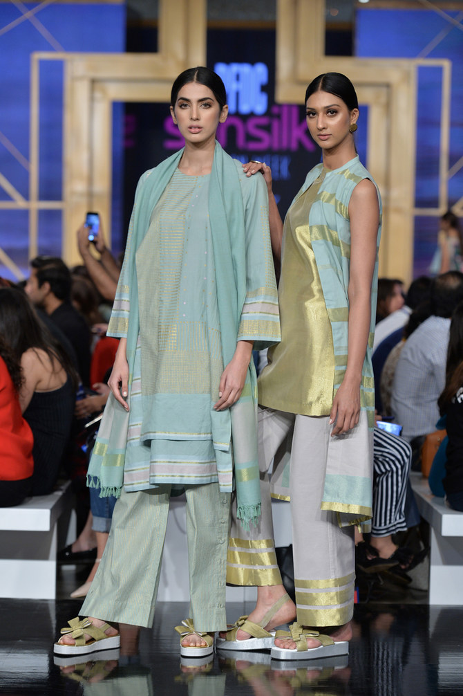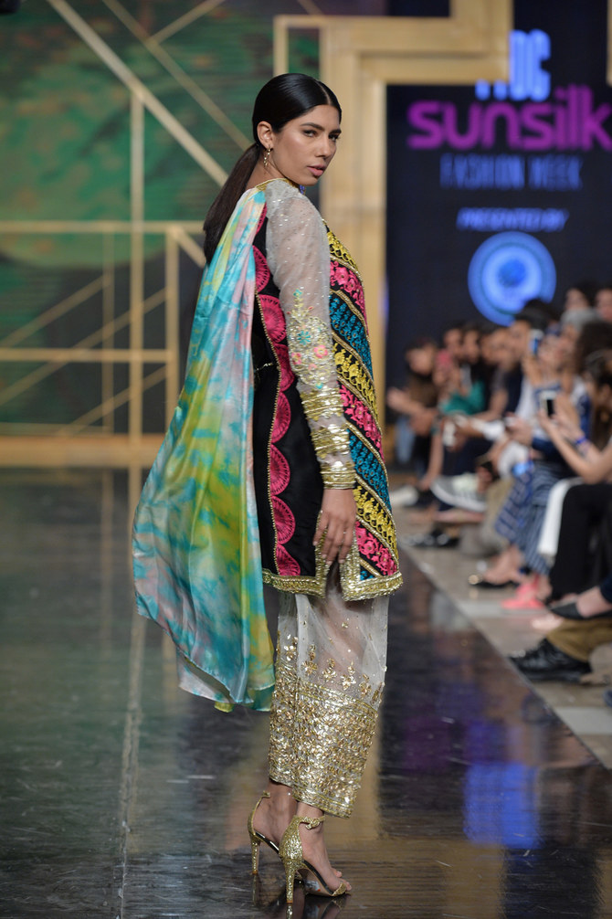 The ramp for spring and summer was also heavily dominated by a bold black/gold combination with designers offering up a number of ways to serve the fierce look. From upgraded casual looks like those seen in retail giant Khaadi’s Chapter 2 show, to formal evening wear as seen on the ramp for popular designers Fahad Hussayn, Hussain Rehar and Zara Shahjahan.