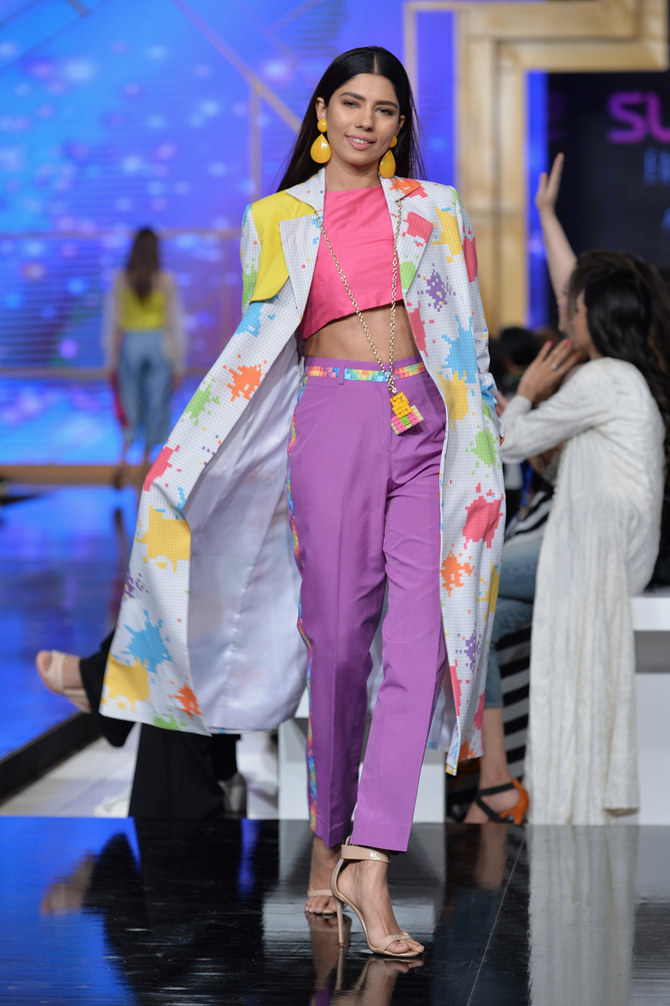 Finally, as far as eccentric runways go, it seemed this season’s ramp truly embraced the spirit of warm weather with huge, eclectic prints. Sameer Karasu’s collection “High Street Savages” was full of bold, expertly placed prints. Saira Shakira, Zaha and Fahad Hussayn also let their prints do the talking, creating entire collections out of the playful contrasts of print-on-print.