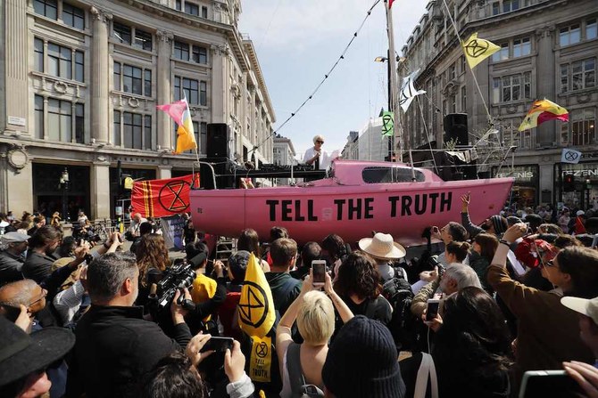 LONDON: Film star Emma Thompson joined climate change activists in a central London shopping district on Friday to read poetry praising Earth’s bounties, part of five days of protests which clogged the British capital with transport snarl-ups.