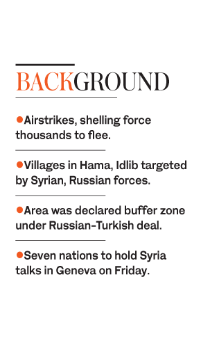 The targeted villages and towns, in northern Hama and southern Idlib, fall within a buffer zone agreed last September by Russia and Turkey as part of a deal that averted a major offensive. Schools, health facilities and residential areas have been hit, according to Panos Moumtzis, a UN regional humanitarian coordinator.