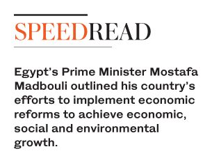 At the forum, Egypt’s Prime Minister Mostafa Madbouli outlined his country’s efforts in recent years to implement economic reforms in order to achieve comprehensive and sustainable economic, social and environmental growth.