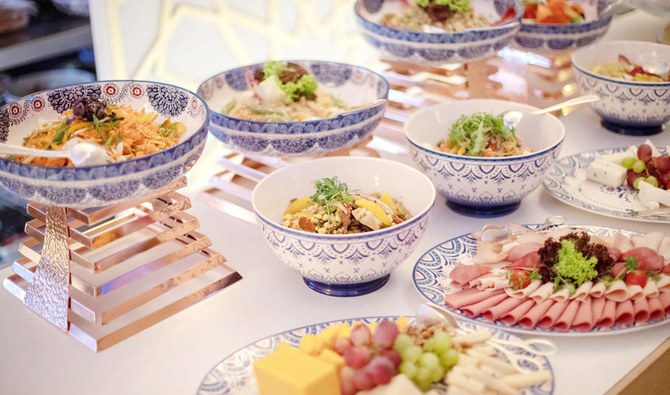 The buffet spread features cuisines from around the world, from Saudi dishes to Asian, Italian and Turkish specialities, displayed in various live stations.