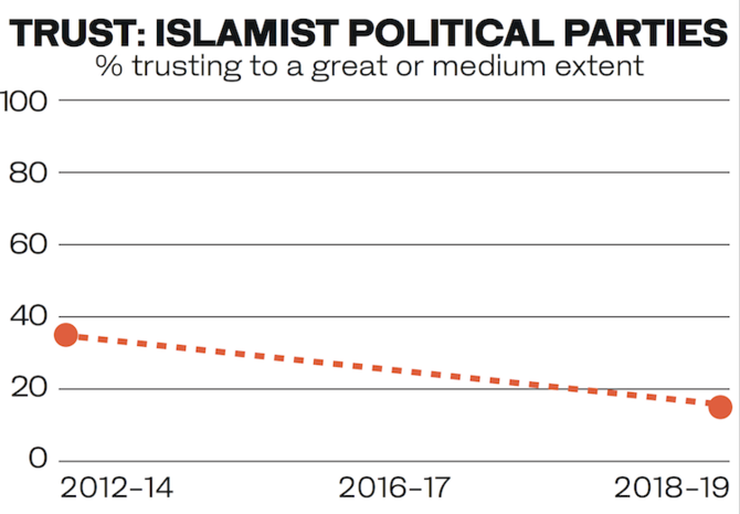 But the study reveals further evidence of the extent to which support for Islamist groups has been in demise over the last eight years.
